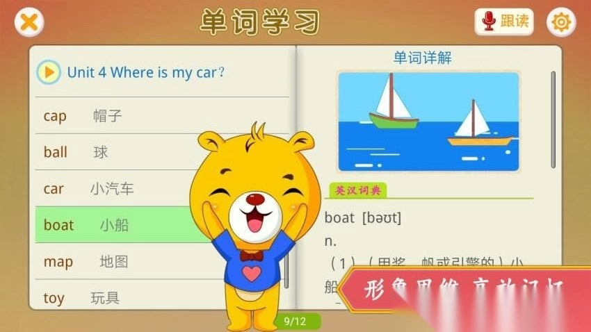 展示趣味精美的单词卡通配图,结合词典解释,帮助孩子更好地理解和记忆单词。