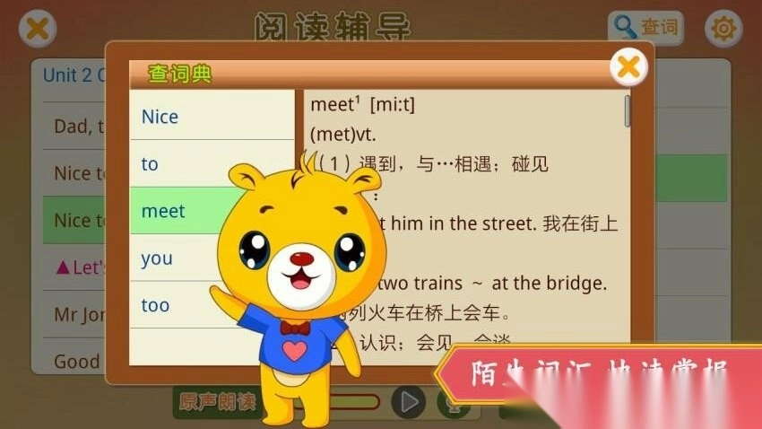 支持一键查词功能,能帮助孩子快速扫清生词障碍,提升学习效率,查询过程便捷又简单。