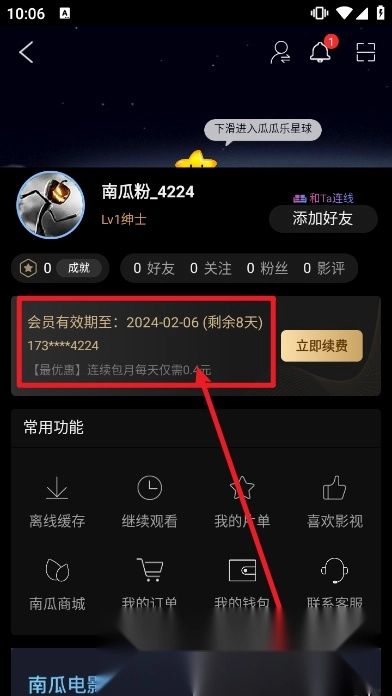 2、在个人中心页面找到并点击【我的会员】选项。