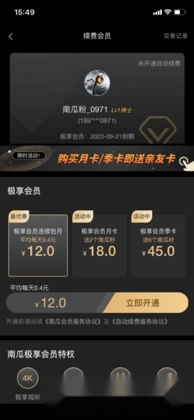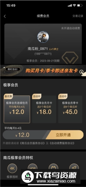 3、进入会员页面后,点击账号头像右上角的【管理自动续费】,选择【取消自动续费】,最后点击【残忍关闭】即可完成操作;若已关闭则会显示未开通自动续费状态。