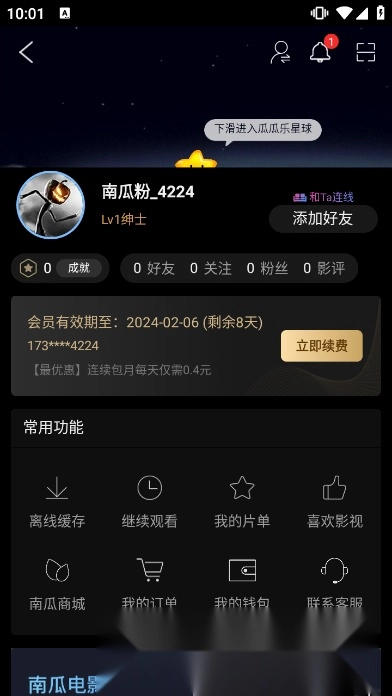 南瓜电影实行会员订阅制,平台所有影视内容均获得正版授权,播放全程打扰,单个账号支持多设备登录使用,新用户注册即可享受会员权益,致力于为您打造专属的视听享受。