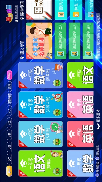 1、小学语文数学英语同步囊括了语文1-6年级的内容,发音全部为真人标准普通话,课文有真人情境朗读+重点学习介绍,字词都有强化练习与学习。