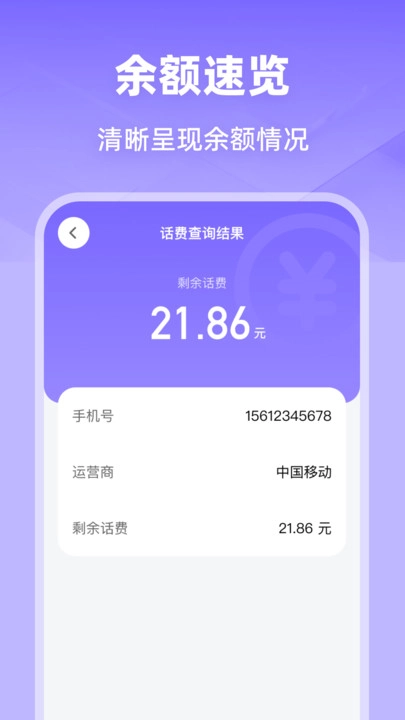 话费流量查询监控是一款专注于通信管理的实用工具,旨在为用户提供高效便捷的话费与流量查询服务。它不仅拥有基础的话费、流量查询功能,还贴心整合了流量换算、Ping查询等实用小工具,同时搭配丰富的通信相关资讯,让用户在一站式体验中全面掌握通信动态。使用方法简单易行,只需输入手机号并轻松选定运营商,就能在话费查询结果页快速、清晰地了解剩余话费金额。
