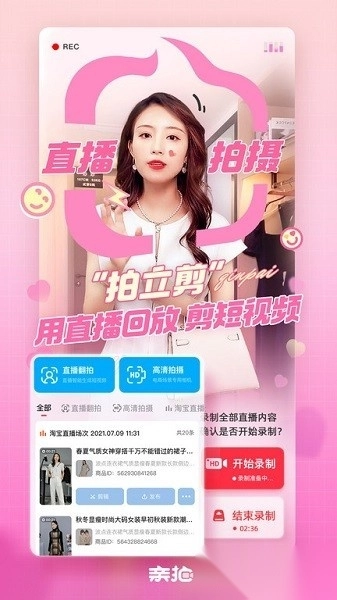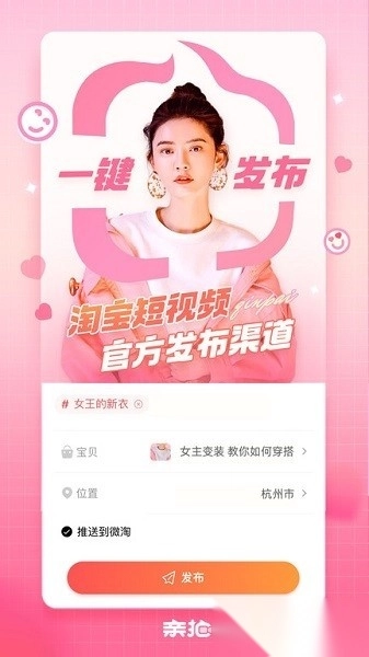 亲拍作为淘宝官方指定的首选短视频应用,是专门为电商从业者打造的便捷视频制作工具。它拥有丰富多样的模板,操作流程简单易懂,只需一键即可完成视频制作,能快速产出高质量的视频内容,有效提高内容创作的效率,堪称电商短视频制作的得力帮手。