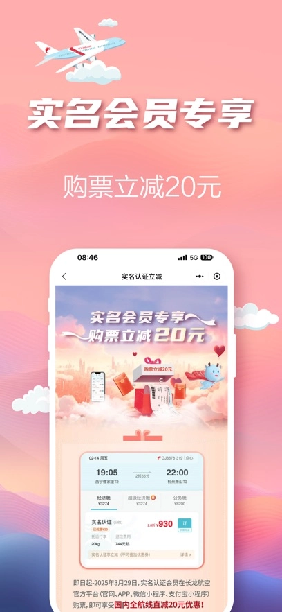 长龙航空是一款专业的航空服务平台,通过该平台能够为大家带来不错的航空服务体验,随时都是能够获取到不错的特价机票订购的,更是具备了特别的优惠活动,以及众多的福利等等,想要了解更多的朋友现在就来使用吧!