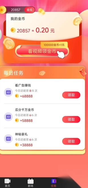 用户在日常刷视频的过程中,每观看一定时长、完成特定任务。