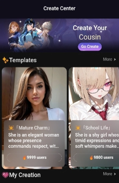 6、浏览模板库中的优质模板,上传个人角色与剧情内容,参与创作挑战活动,获取收益分成,复制大神参数以提升创作效率。