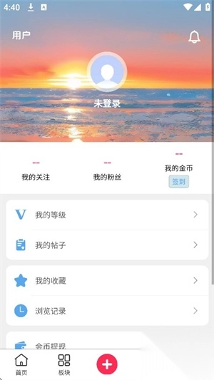 打开软件后,点击底部的【我的】选项,接着选择【未登录】按钮。