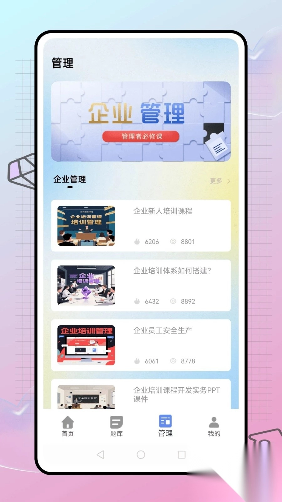 管理页面主要聚焦于企业管理类课程,例如新人培训、体系搭建等内容。