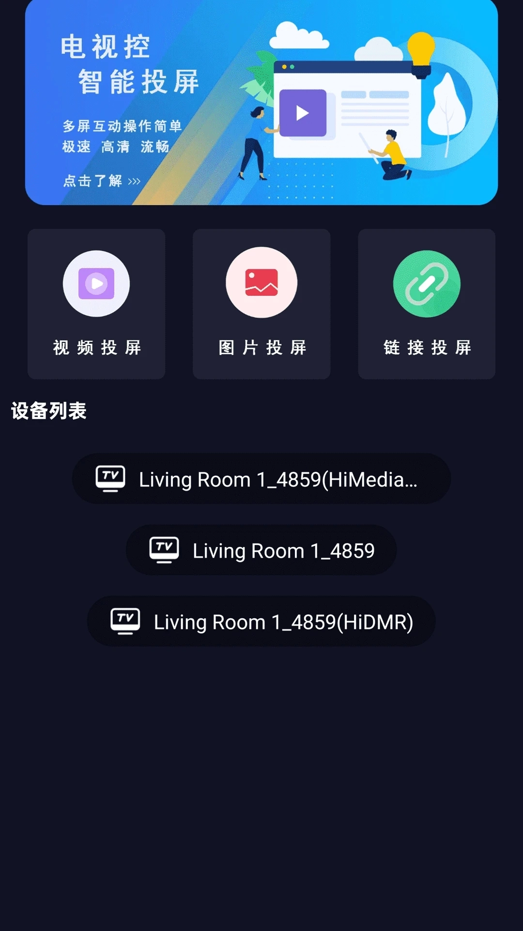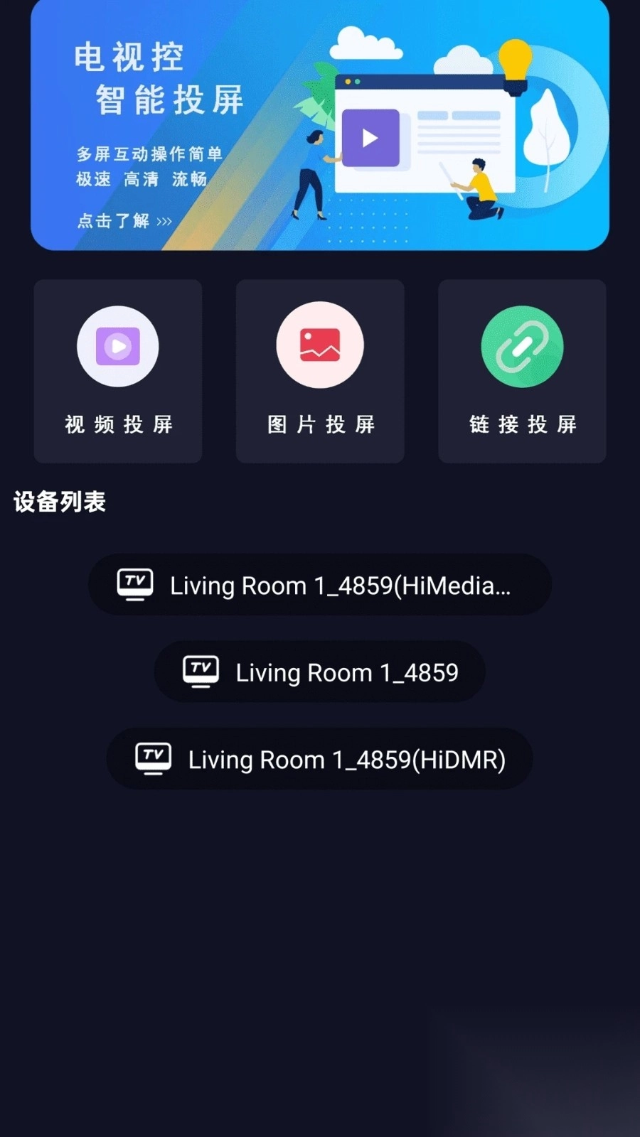 和传统的有线连接方式比起来,电视控投屏App不再受繁琐线路的限制,设备之间的配对过程只需要几秒钟就能完成。