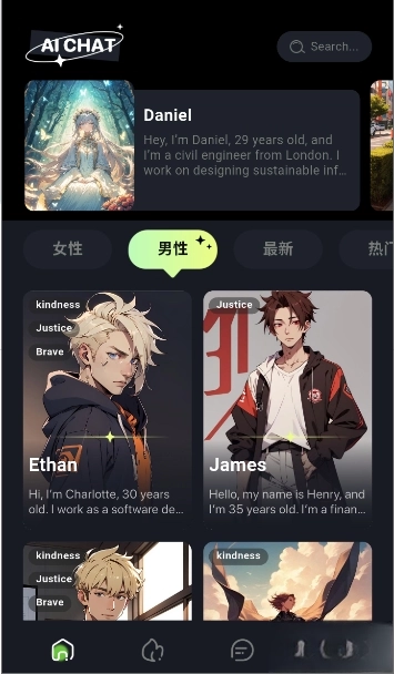 Babol AI提供海量AI角色库,涵盖男性向、女性向等多种类型,用户可根据兴趣自由选择喜欢的AI人物进行对话交流。