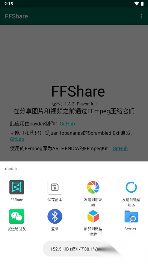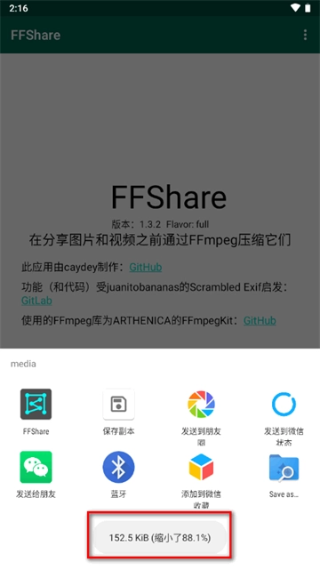 这是一款实用型工具类应用,核心功能在于借助ffmpeg技术帮助用户在分享文件时减小文件体积。它支持对图片、视频、音频等多种类型的文件进行压缩处理。