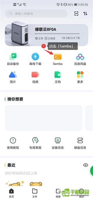 1、打开绿联云,在首页界面,点击【Samba】选项