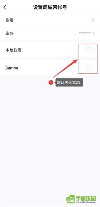 3、设置完成后,我们可看到当前本地账号和Samba默认为关闭状态