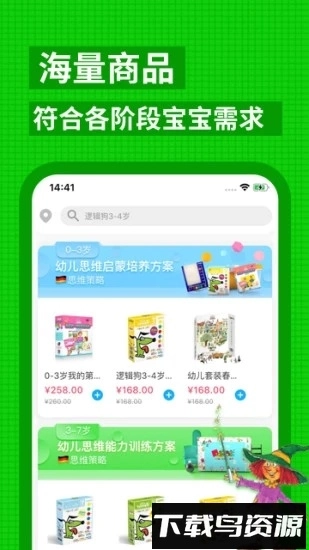 2. 好物商城涵盖0到12岁儿童思维训练所需的全套资源,包含知识服务和绘本,由品牌直接供应,价格经济实惠;