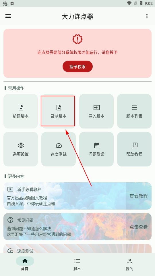 2、授权之后我们开始录制脚本,已经有脚本的朋友也可以选择直接导入。