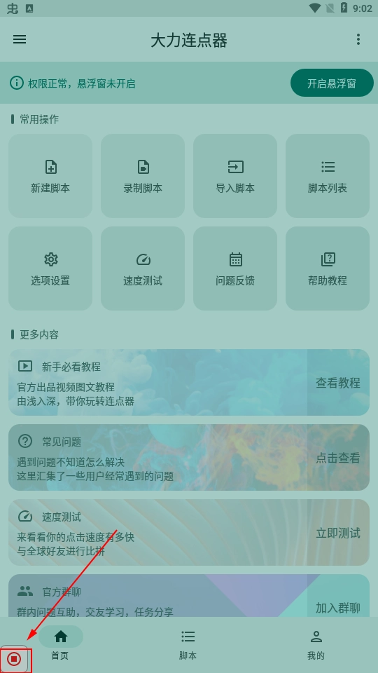 3、点击录制脚本之后,点击如下图所示的区域,开始录制,选择你想连点的屏幕区域。
