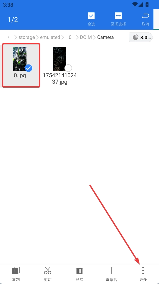 2、长按文件,点击右下角的更多