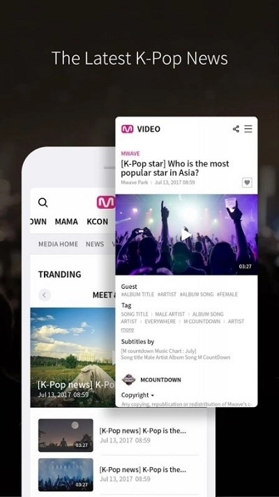 Mwave是一款超棒的追星神器,在这里你能掌握爱豆的所有动态!和其他粉丝畅快交流,不错过任何热门活动,还能参与投票为偶像助力,随时了解他们的行程安排、作品资讯,甚至有机会和偶像互动见面,感兴趣的粉丝快来使用Mwave吧!