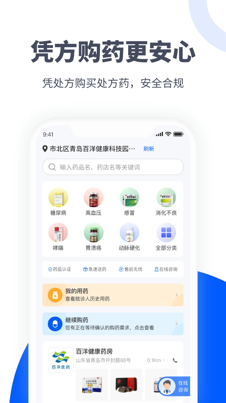 3.功能使用:依据自身实际需求,挑选处方查询、便捷购药、在线咨询等功能开展操作。