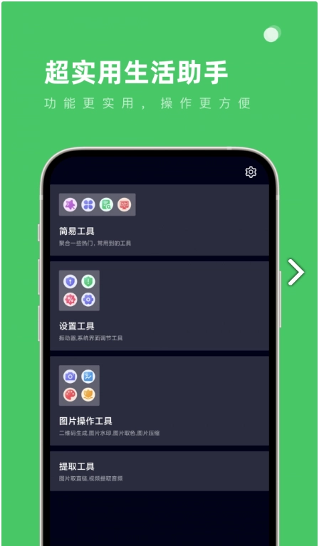 超实用生活助手是一款手机工具类应用,它能帮你快速定位所需文件,还提供各类图标资源;优质资源都经过文档化的划分与归类,输入关键词即可精准查找指定文件;此外还有水平仪等实用工具,所有工具都分类细致,你可以直接按需使用。