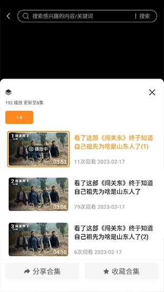 搜索出来后就会一些花絮或片断供用户免费观看