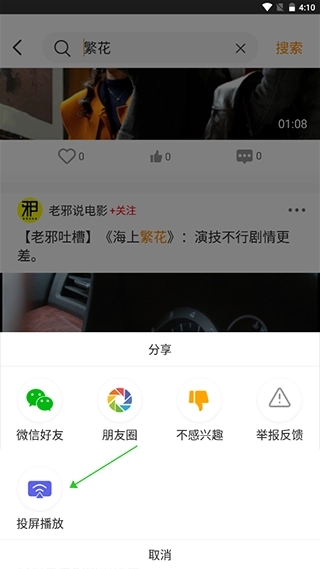 接着在底部就会弹出投屏播放按钮