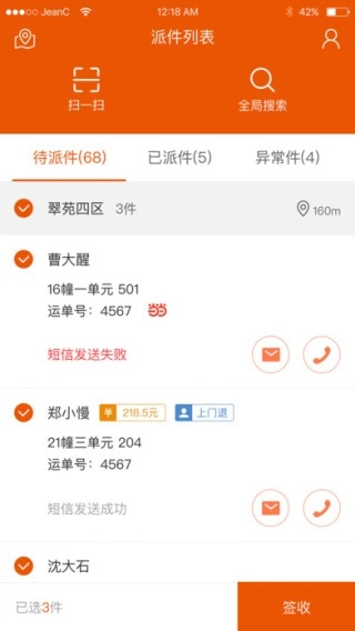 2.功能升级:新添批量签收、运单轨迹查询等功能,以进一步提升配送效率。