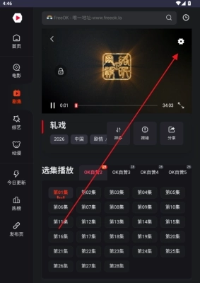 2、随后点击播放界面右上角的设置按钮;