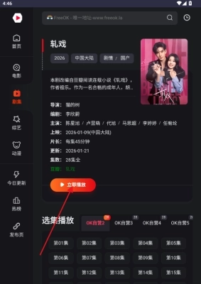 Freeokvip追剧网页版为追剧爱好者提供了海量免费的影视资源,通过与多家资源方深度合作,新电影、新剧集总能第一时间上线,更新速度十分出色,用户完全不用担心片源过时。这里的资源库不仅数量繁多,覆盖范围还特别广,无论是好莱坞大片还是小众独立电影,最新番剧还是经典动漫,热门网络综艺还是各类纪录片,几乎应有尽有。用户不用在不同平台间来回切换,大大提高了使用的便捷性。而且它对设备配置的要求很低,就算是老旧或低配的手机也能流畅播放,不会占用太多内存,也不会影响系统运行,快来体验吧!