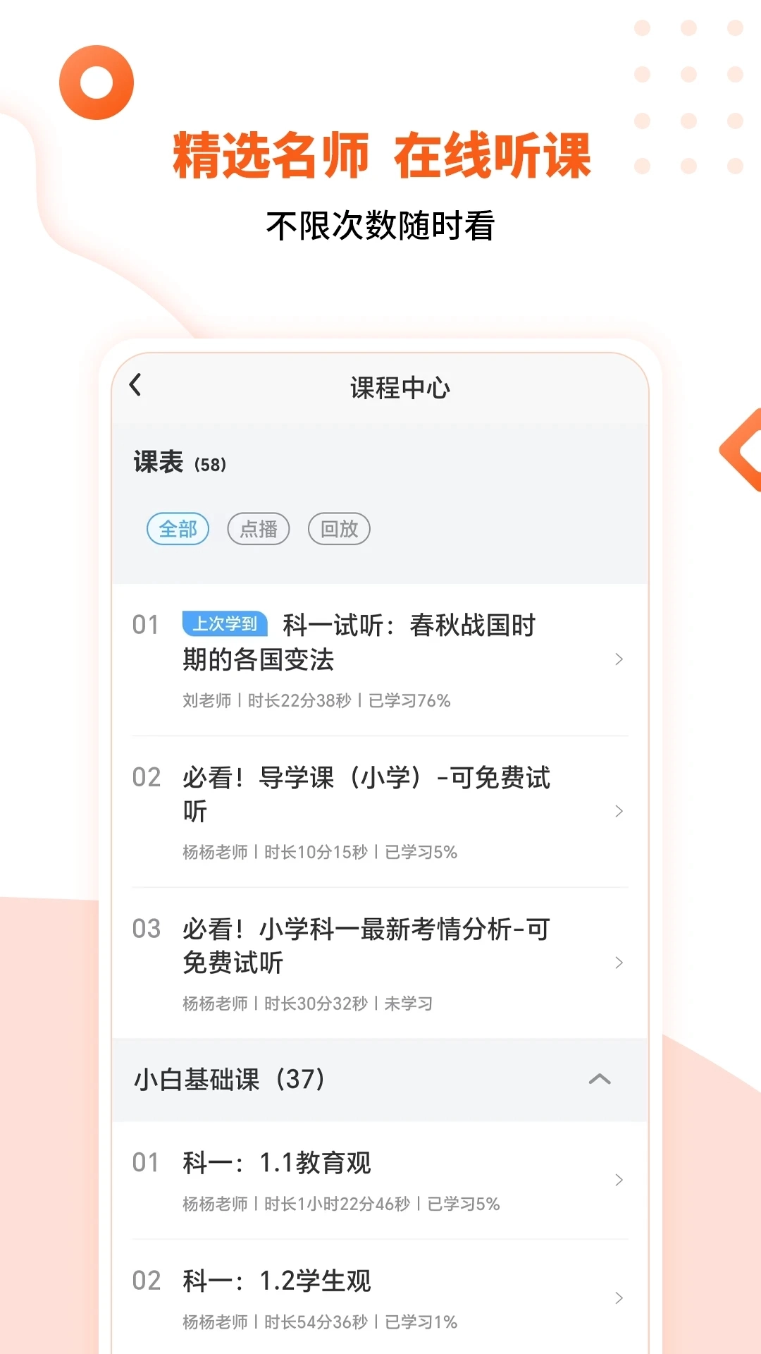 亿学云为大家准备了丰富多样的职业教育课程,涵盖教师资格证考试、教师招聘考试,还有普通话水平测试、Office办公软件操作等内容,能够满足不同用户的学习需求。所有课程均由专业教师授课讲解,有助于提升用户的学习效率。平台还提供了大量练习题,方便用户随时刷题练习,助力大家轻松通过各类考试,收获高效的学习体验。