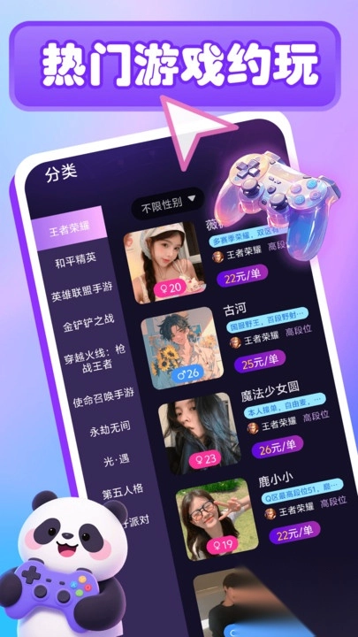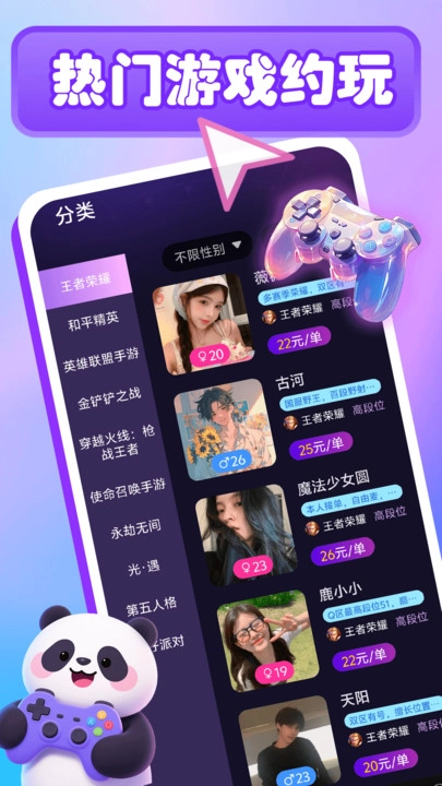 熊猫游戏电竞是一款十分出色的电竞游戏软件,专注于主流电竞游戏领域,全面覆盖热门作品,并且融入了多元品类,以满足不同玩家的喜好,打造丰富的游戏生态。它支持玩家全天候随时发起组队,让组队开黑变得更加便捷,进一步增强了电竞社交的属性。