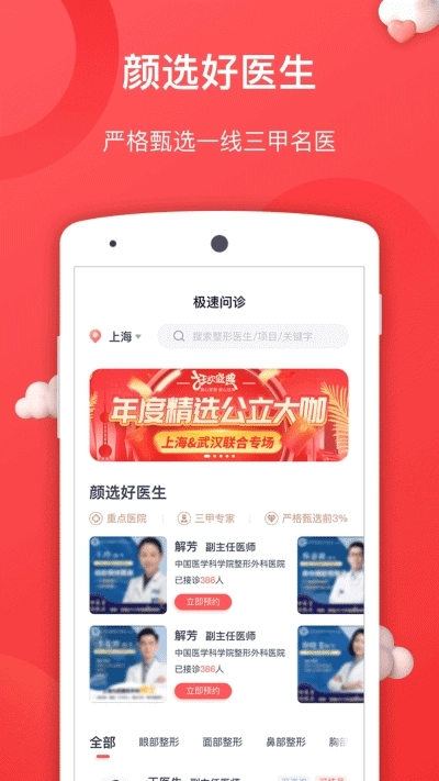 颜医,您要找的公立整形医院都在这儿啦。目前已有超50家知名公立整形医院入驻,您能在线便捷联系到超2000名公立名医,这就是您的医美云诊所,让变美这件事更简单!我们会从美学设计、医生挑选、术前陪诊到术后维护,为您提供全程1对1的定制服务。