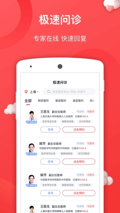 在线预约:只需一键,即可预约整形医院面诊,快速知晓个人需求。
