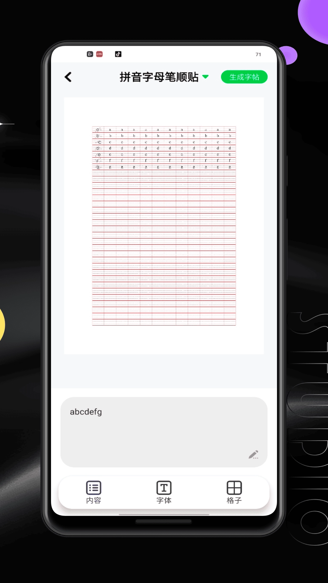 拼音字母笔顺贴,可生成字帖供练习书写,助力规范拼音和汉字的书写顺序。