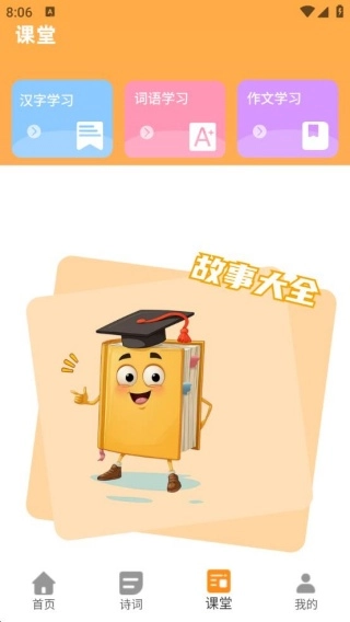 进入课堂界面后,汉字学习、词语学习、作文学习等各类学习内容均免费提供。