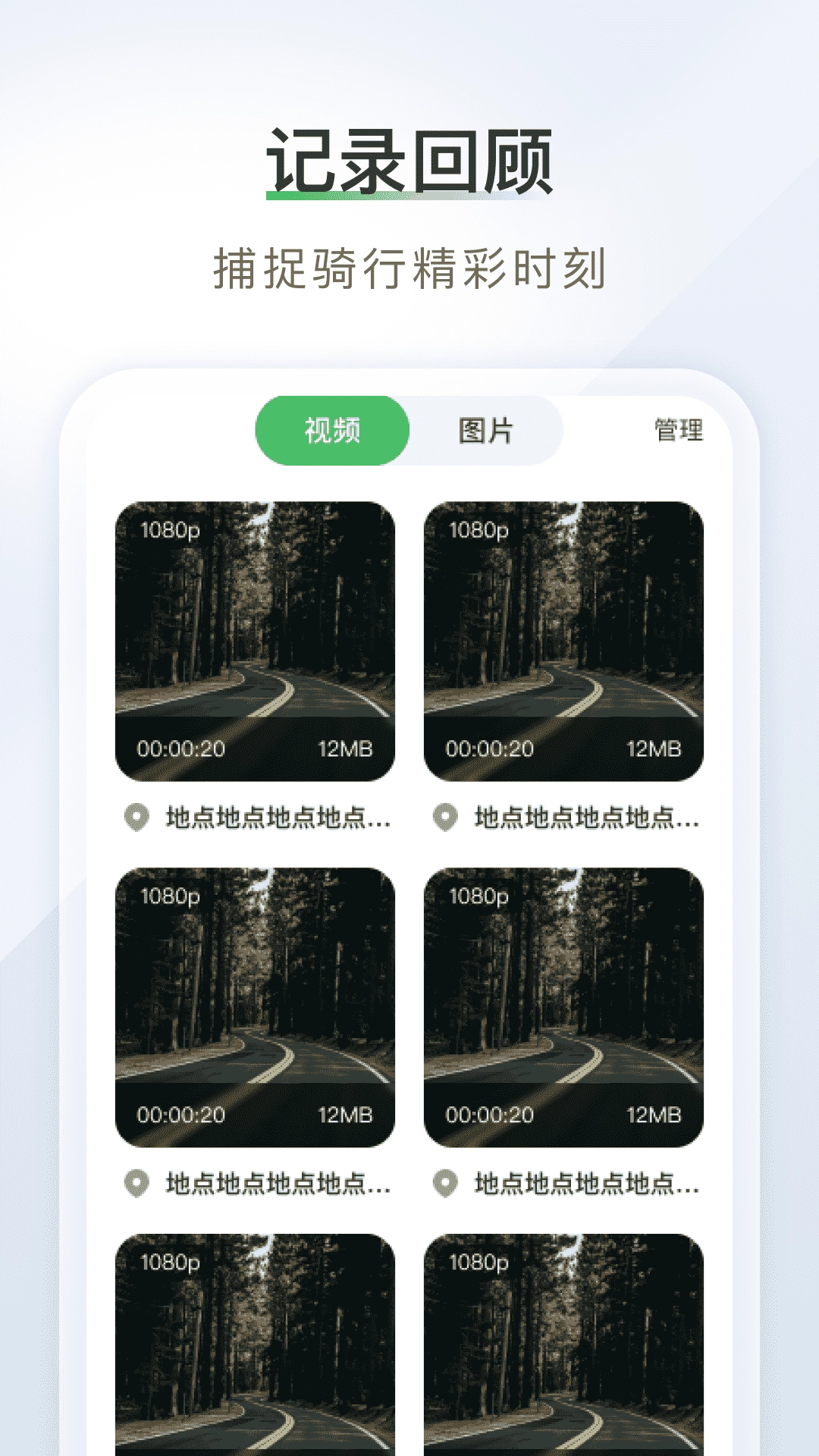 拍摄的视频与图片能够进行分类管理,并且可以随时回顾,使骑行途中的风景和回忆都能清晰地保存下来,方便随时浏览。