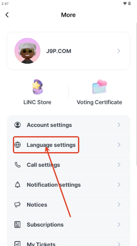 2、在这里点击语言修改,language setting;