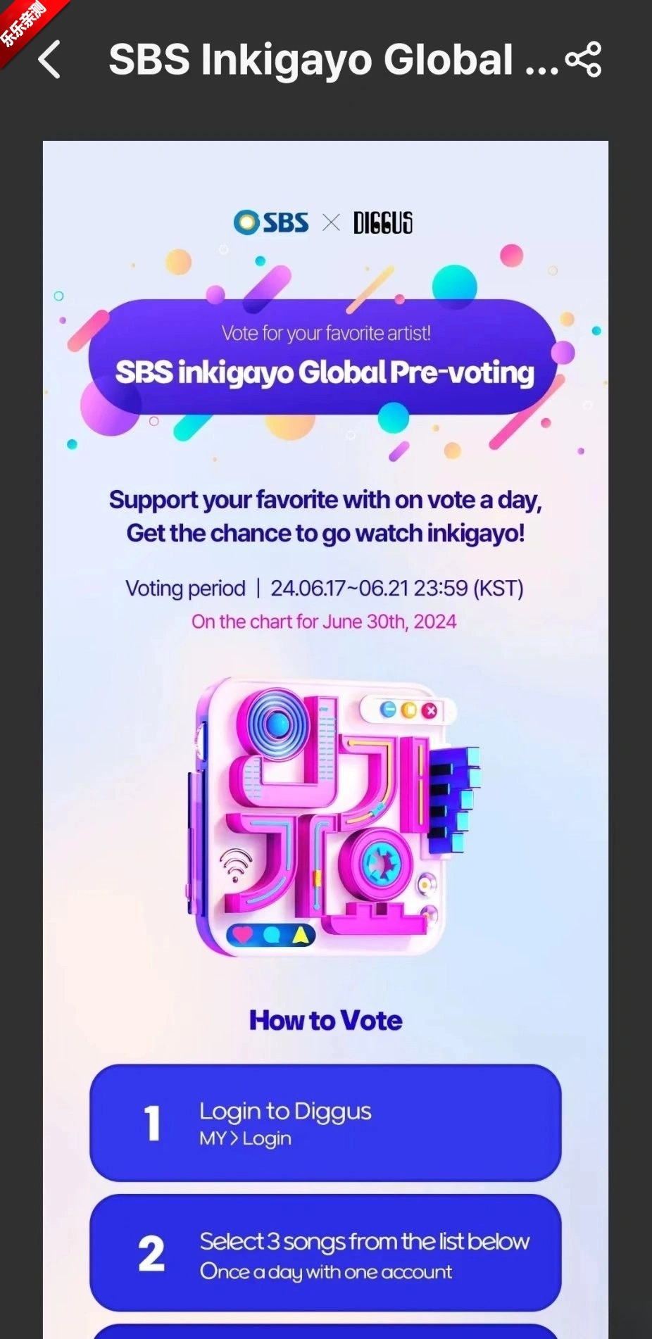 挑选你所支持的艺术家,然后依照提示完成投票流程。每日最多能够给3位艺术家投出选票。
