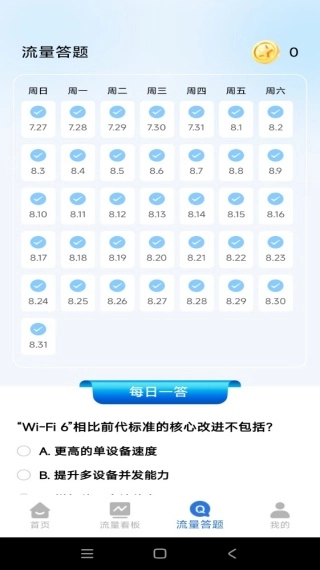 流量问答互动:用户能够参与每日的流量问答活动,学习相关的流量知识,提升对流量使用的认知水平。
