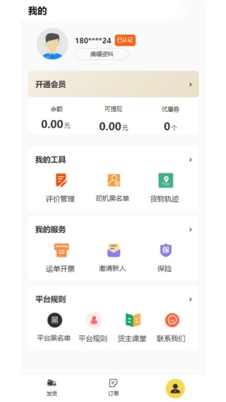 从发货、跟踪到评价、开票构建完整闭环,额外配备会员特权、运单开票等功能,全方位覆盖货运全流程需求。