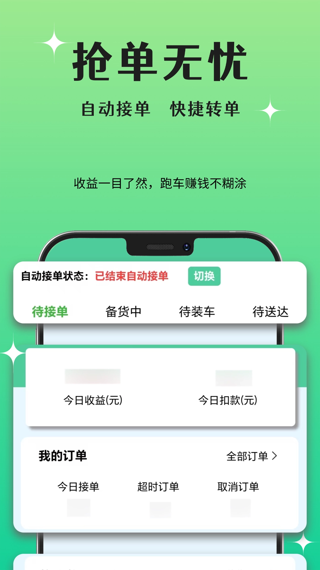 订单收益清晰透明,实时呈现今日收益、扣款等数据,司机能对收入情况一目了然,方便进行财务管理。
