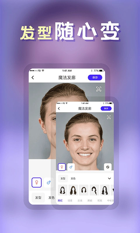 智能摄影设计发型,秒速换发。