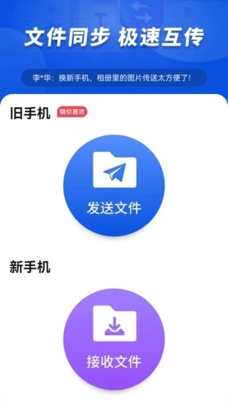 进入互传界面后,文件同步实现极速互传,只需旧手机发送文件,新手机接收即可。