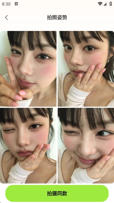 里面包含了不少不同的拍摄姿势,用户能够随时点击拍摄同款来完成操作。