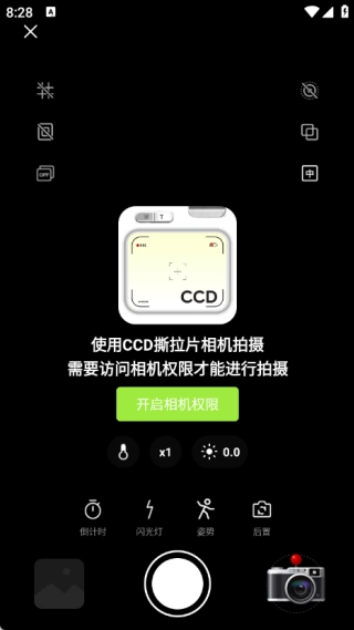 在拍摄界面需要打开相机权限,之后可对闪光灯、拍摄姿势等参数功能进行设置。