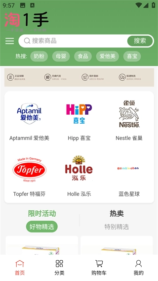 淘1手是专门面向中国妈妈群体的跨境电商购物平台,专注于为用户提供海外高品质的奶粉和母婴用品。在这里,妈妈们可以便捷地挑选到来自世界各地的优质母婴产品。平台与全球多家知名品牌达成了直接合作,保证所有商品都是正品,并且通过直邮的方式从海外原产地直接配送到消费者手中。