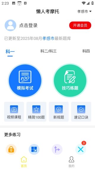 向下滑动查看更多练习内容,其中包含考前密卷、专项练习、图标速记与错题收藏,此外还有技巧视频可供学习。