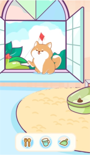 2、日常照料系统:设置了喂食、喂水、清洁等基础养护环节,模仿真实的养宠过程,帮助用户培养责任感,增进和宠物的情感联系。