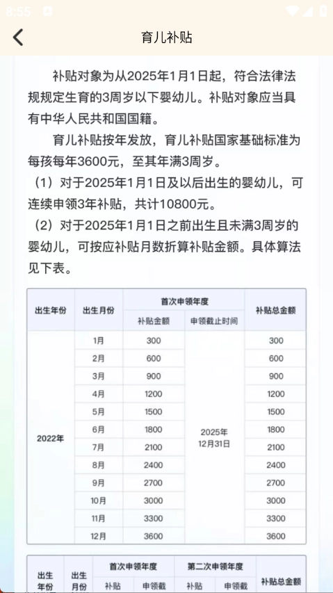 计算出你的育儿补贴后就能知晓具体的补贴标准,从这一公布的补贴标准可以看出,只要是2022年及以后出生的孩子都能够申领。